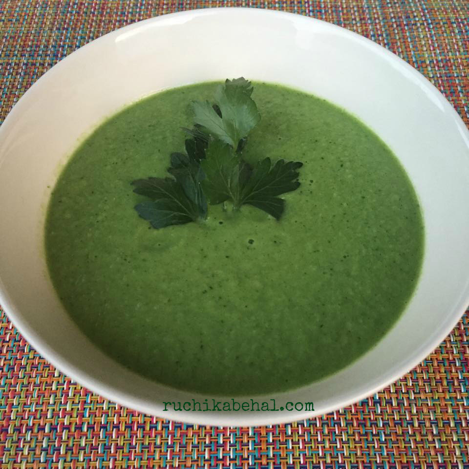 By now you must know my fascination for the color green especially when it comes to the foods I eat. I don’t think any soup could get greener than this. We have eaten this soup a couple of times in the last three weeks and and the fact it can be a one dish meal with lots of vegetables and hearty plant based protein is a definite a seller. Another plus- it is KID APPRROVED – my kids and their friends!
